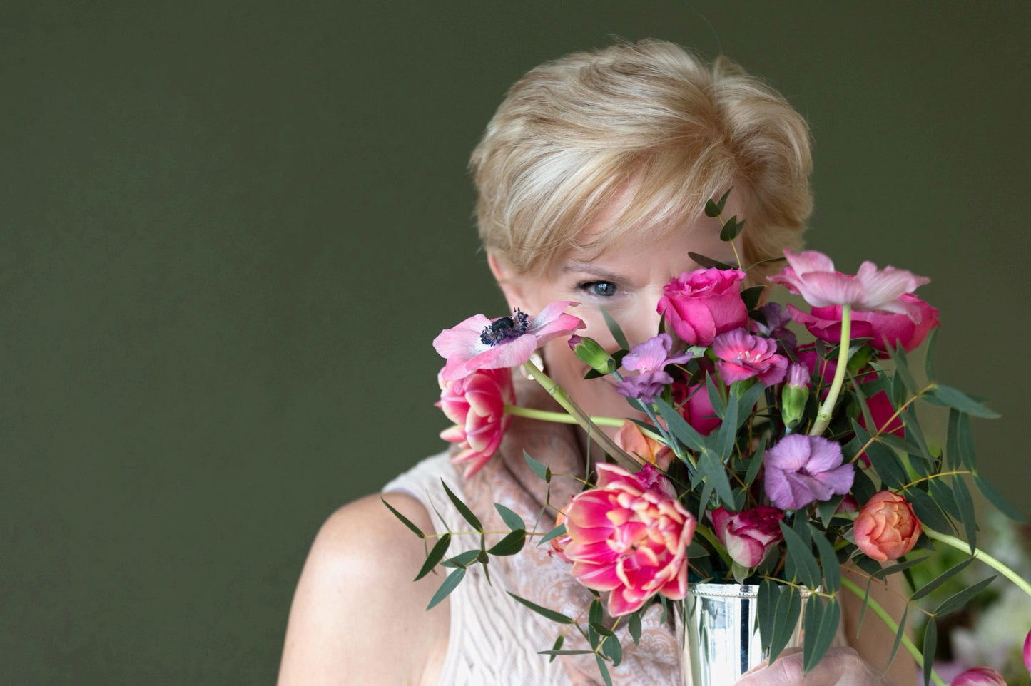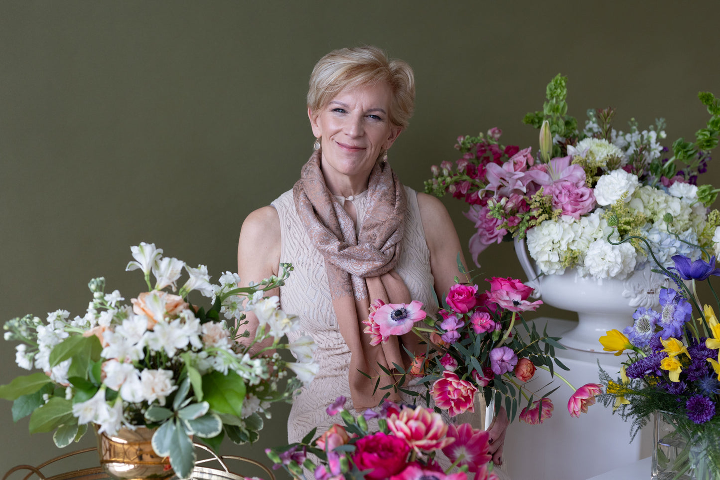 comes from a long line of creatives in her family history— musicians, painters, designers, gardeners, all of whom looked at the world with an artful sense of possibility and wonder. As a child, she tended a modest garden of gladiolus, lilacs, and rambling roses, all her mother’s favorites. She remembers offering them to favorite teachers in school, spontaneously handmade bouquets, wrapped in paper towel and aluminum foil for easy transport! Flowers have been a mainstay in Bonnie’s life. She was always drawn to how flowers, once invited indoors, added immeasurable atmosphere to holiday gatherings, celebrations, daily living.